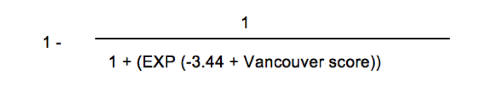 The Vancouver score – calculated with the formula: age (years)*0.062 + loss of consciousness (yes = 1/no = −1)*1.14 + cardiac arrest (yes = 1/no = −1)*0.6